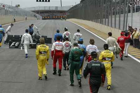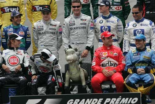 Webber: DC...不要亂玩驢子的耳朵...喂~Minardi的(穿黑衣者),幫我注意shumi來了沒啊!
