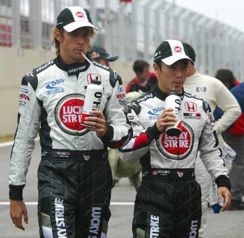 (Sato明顯小Button一號...) 注意!!異物現身於BAR兩位車手身後!?