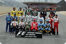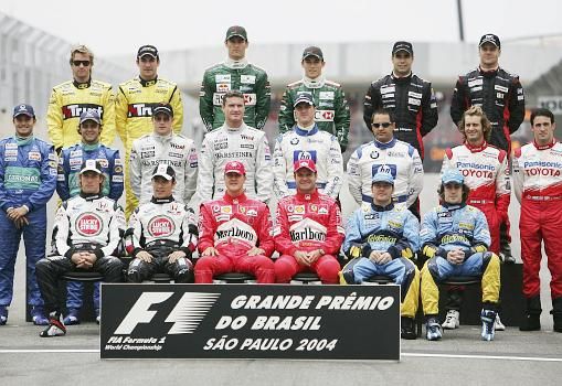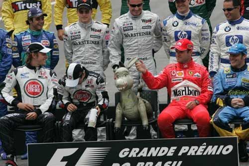 開賽前要拍照留念,大家都乘坐同一部車到了拍照現場...注意法拉利車手後面有異物!?