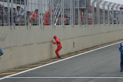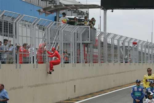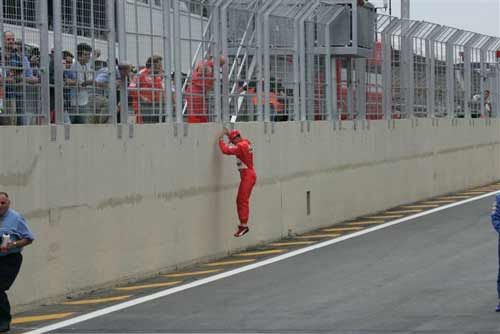 難道法拉利全隊上下都是爬欄杆高手嗎...連shumi都身手不凡XD