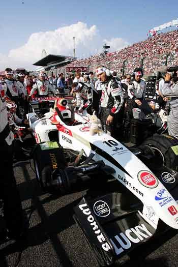 哈哈哈~~這張實在太經典了~ 注意看喔...所有的工作人員頭上都有一條"必勝"喔!! 對了,畫面上的是Sato 先生的車車,配上這個剛剛好啊XDDD