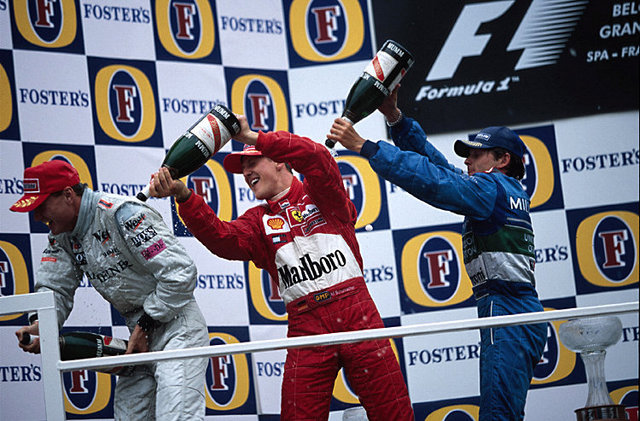 2001 年,老大雖然開著破車,還是在 Spa 賽道成功站上頒獎台