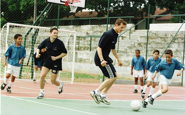 2000 年,跟一群小鬼頭比踢足球,身為義大利人當然也不能輸給瑞士人啦~